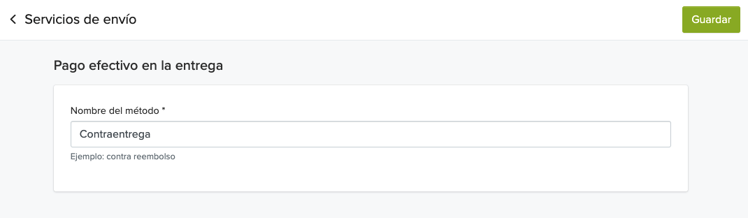 Es un método de envío que permite cobrar el costo de despacho por separado del total de la orden al cliente. En lugar de un importe de envío cero, se le mostrará un mensaje explicando que el envío se pagará en destino.